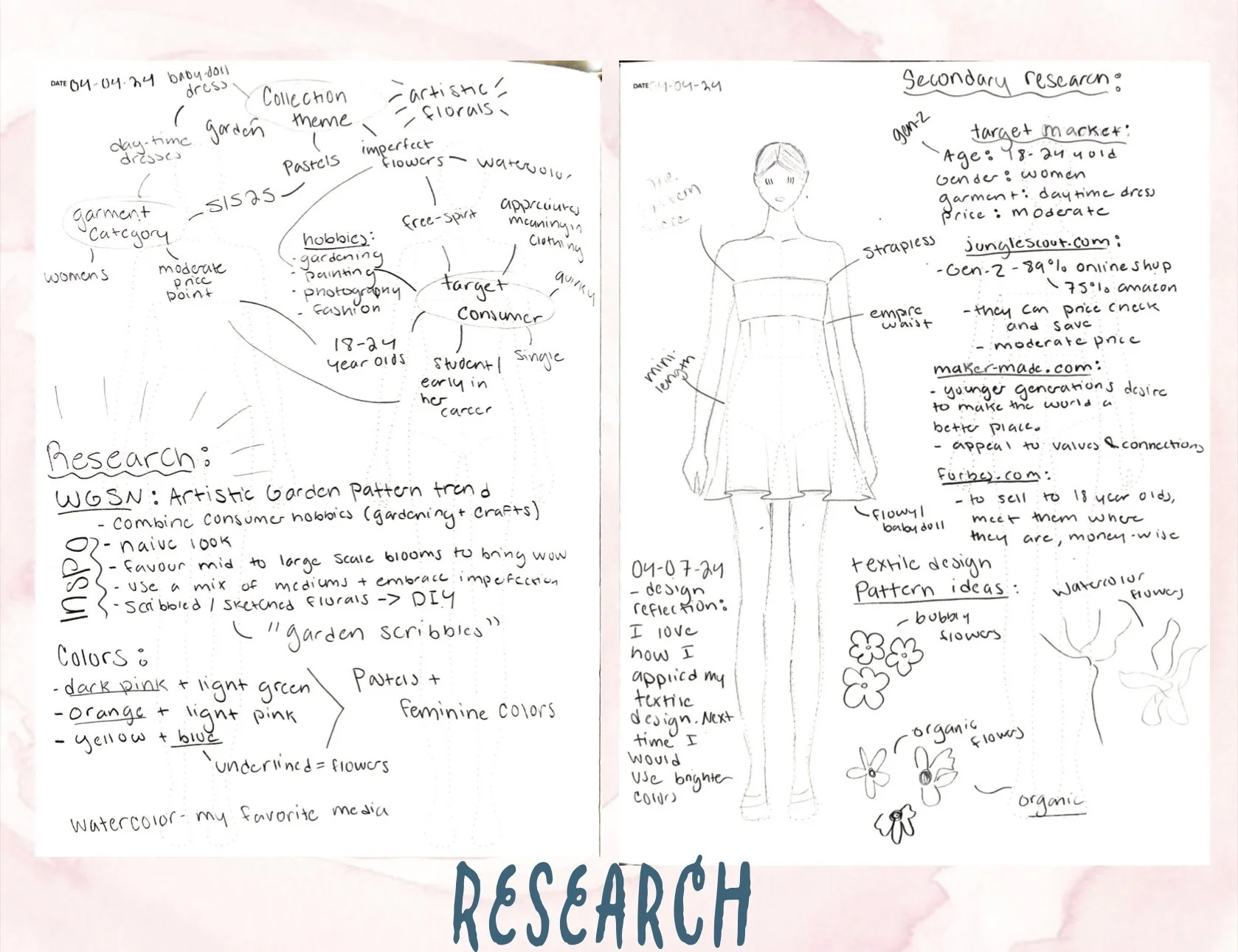 Utilizing CLO 3D software, I created a dress inspired by hobbies and creativity. I created a floral pattern on Adobe Illustrator based off of a predicted textile trend on WGSN , artistic bloom. I then applied my textile design to my CLO 3D pattern pieces and ran a simulation.